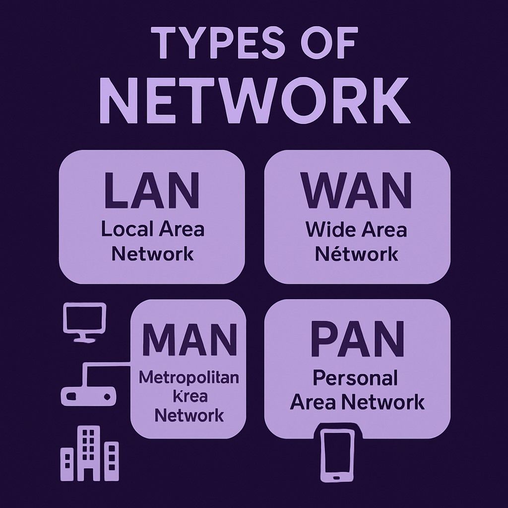 next, we’ll explore the main types of networks like LAN, WAN, MAN, and PAN, and see where they are used in real life.